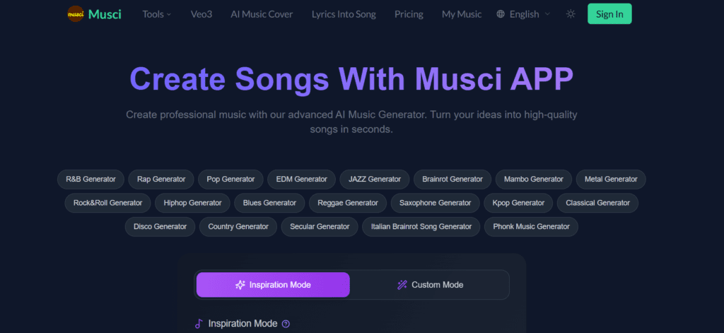 Musci AI is an advanced music and audio creation platform that converts text and audio inputs into songs, stems, and custom audio content. It’s designed to help users quickly generate complete tracks, lyrics, remixes, and isolated vocals. The tool is based on deep learning models trained on large music datasets to understand genre, mood, instrumentation, and vocal styles. This AI backbone differentiates it from simpler generators. Musci AI stands out for its wide array of audio tools, including an AI Music Generator, Lyrics Generator, Vocal Isolator, Music Remixer, and more. The tool is suitable for musicians, video producers, game developers, and creators of all levels.