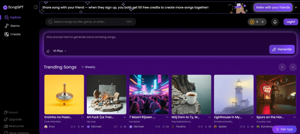 SongGPT offers a free plan with limited features. Paid plans start at Starting from $9.9/month