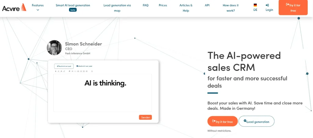 Acvire CRM is a web-based sales productivity platform built to help teams discover qualified leads, automate repetitive tasks, and communicate more efficiently. Using AI data enrichment, email generation, lead scoring, and visual sales pipelines, the tool helps grow your sales funnel faster and manage deals clearly. At its core, Acvire uses AI to automate complex sales work, such as finding contact information, writing personalized outreach messages, organizing pipelines via Kanban boards, and making daily action recommendations. Teams spend less time manually managing data and more time engaging high-potential leads.