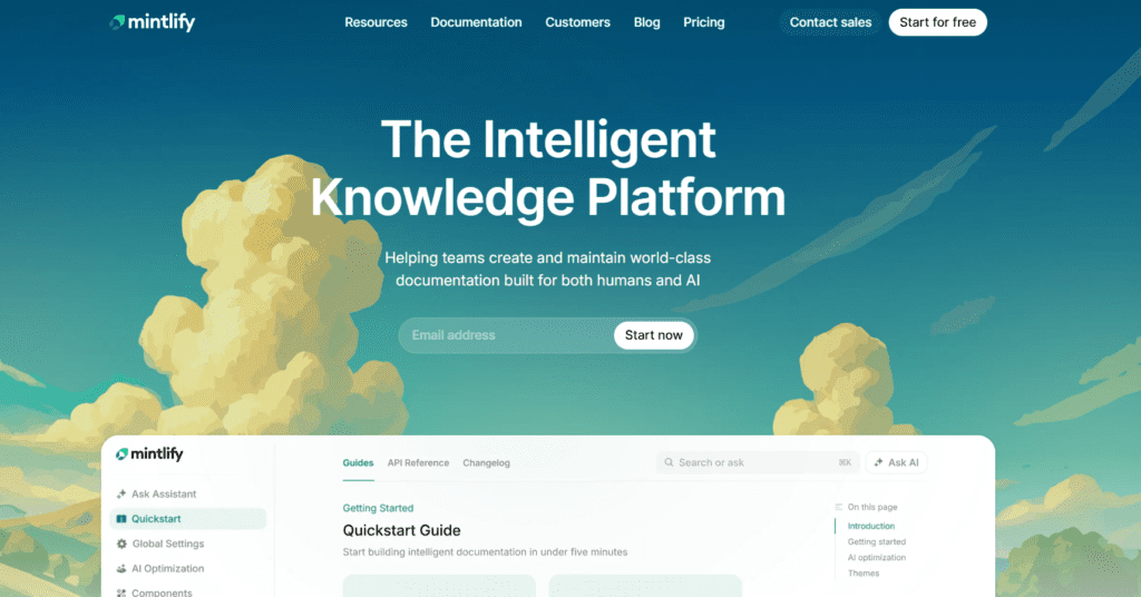 Mintlify is an AI documentation platform that helps teams create, manage, and host modern technical documentation and API references.
