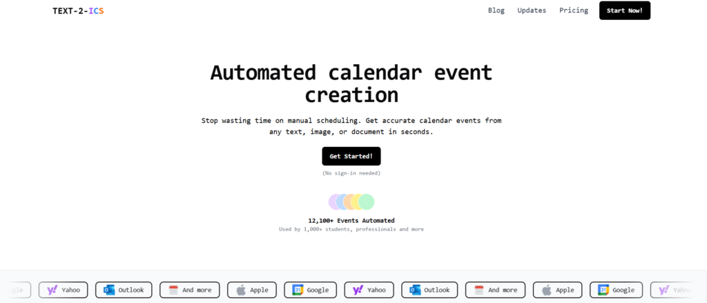 Text-2-ICS AI is the platform that converts text, documents, images, and PDFs into downloadable .ics calendar events.