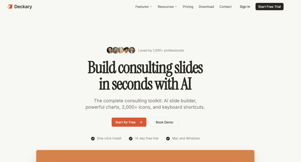 Deckary is an AI presentation generator that creates structured slides and pitch decks from simple text input. Users enter a topic or idea. The tool generates slides instantly. It builds headings, bullet points, and flow. Deckary AI is used for: pitch deck creation business presentation startup storytelling content-to-slides conversion Deckary emphasizes speed, clarity, and structure, removing manual slide creation, enabling a quick idea-to-presentation transition. It works as a content-first presentation tool. Design is simple but effective. The goal is fast communication, not heavy customization.