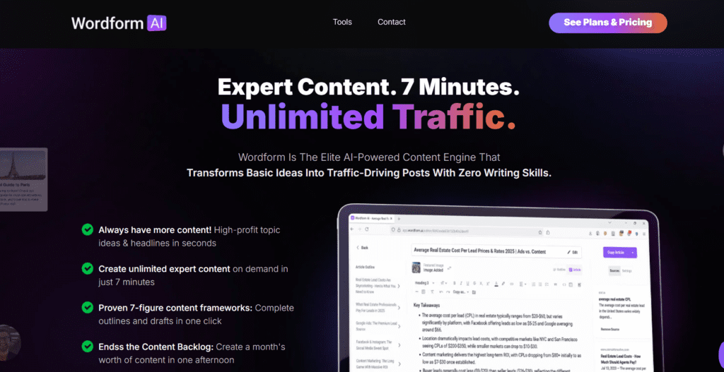 Wordform AI is a writing assistant platform that uses artificial intelligence to generate high-quality, SEO-optimized blog content and outlines. It helps users to produce expert-level articles without requiring manual writing skills. Wordform uses AI models and specialized content-generation frameworks to deliver more natural and authoritative text. Its system conducts deep research and suggests traffic-driving titles and outlines. The tool stands out for its structured content workflow. It is suited for bloggers, marketers, and businesses that regularly publish long-form content.