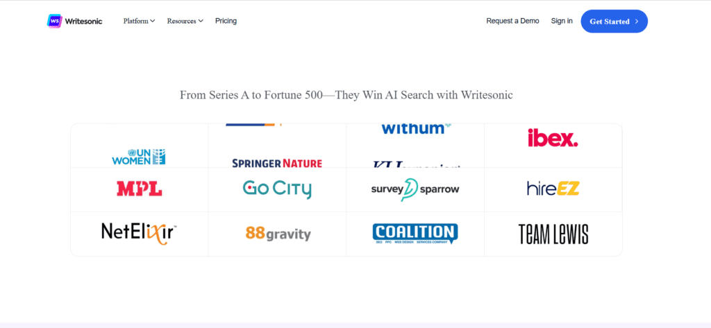 WriteSonic is a content creation and optimization platform that helps users generate marketing copy, blog posts, social media text, and SEO content. It combines AI writing tools with SEO automation and AI search visibility tracking to help businesses boost search presence. The platform is built on advanced models like GPT-4 and other large language models, which sets it apart from many standalone AI writers. The models help produce contextually relevant, SEO-focused writing, enabling users to generate long-form content. It is best for freelancers, content marketers, and teams seeking both writing and search performance tools.