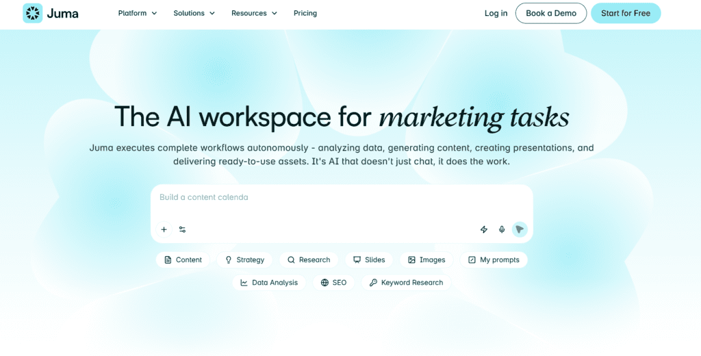 Juma is an AI-powered collaborative workspace that helps marketing teams execute complete workflows using artificial intelligence.